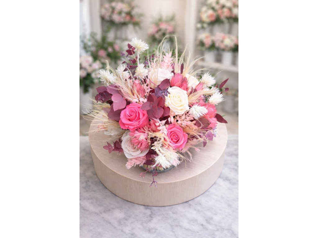 Bohatá stabilizovaná kytice – růžový sen